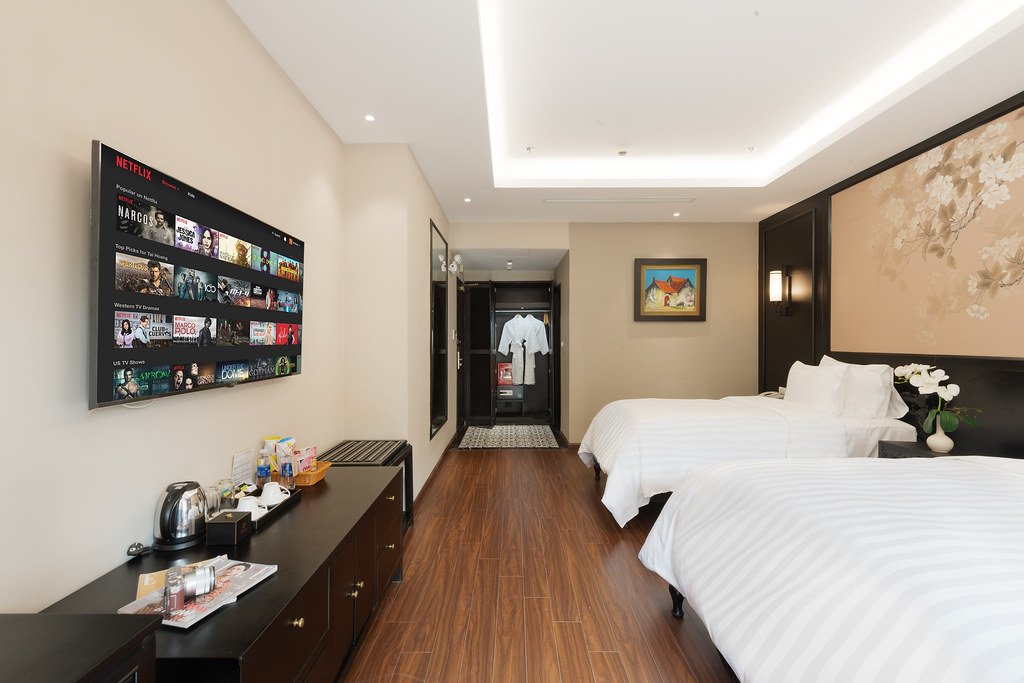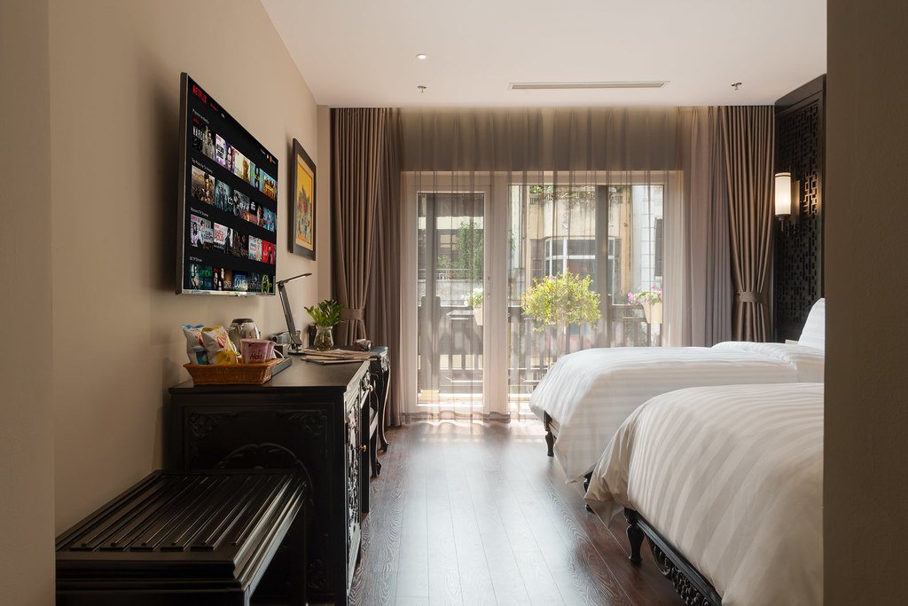 A generous retreat for small families or groups, this room includes 1 double & 1 single bed, city views, and thoughtful amenities for a comfortable group stay.